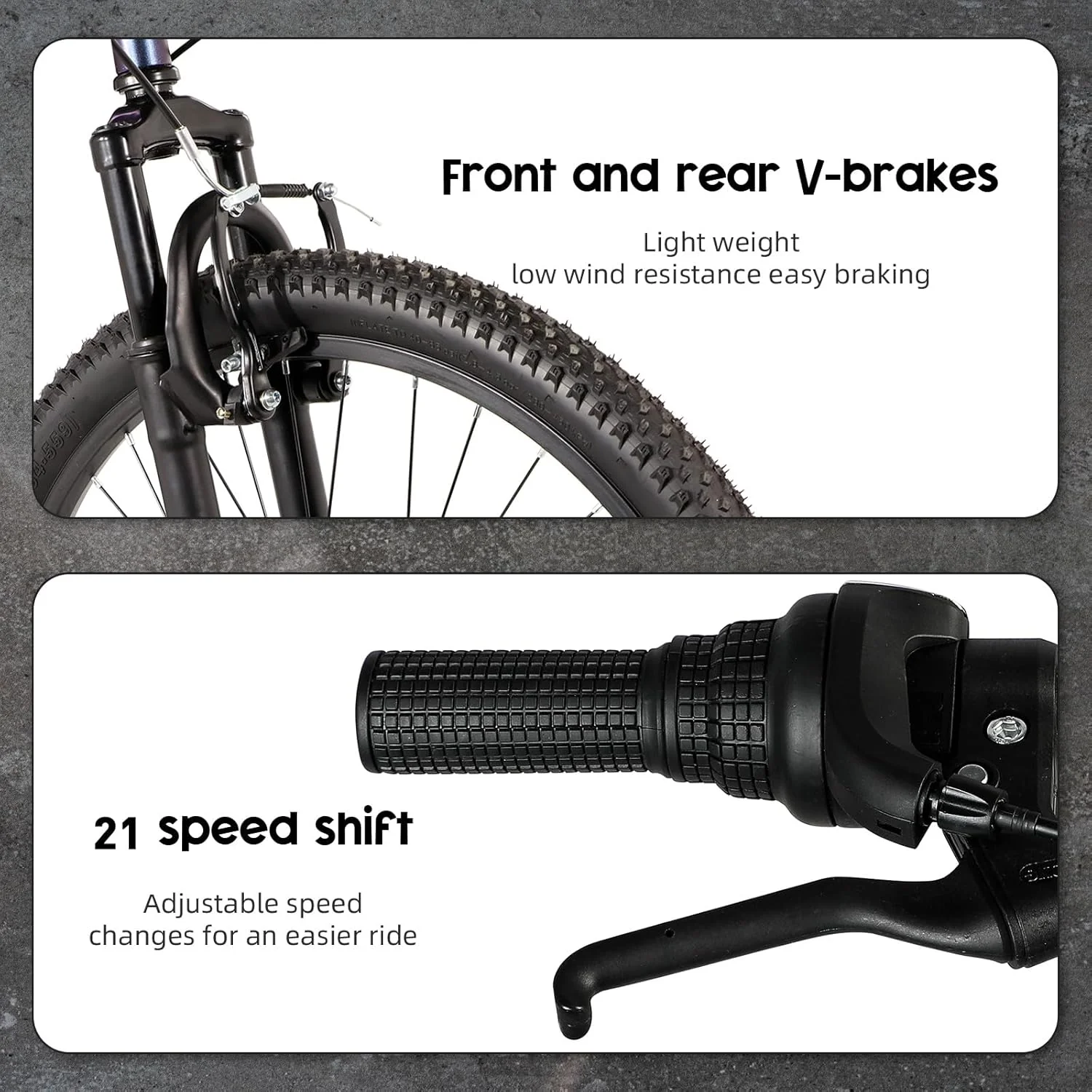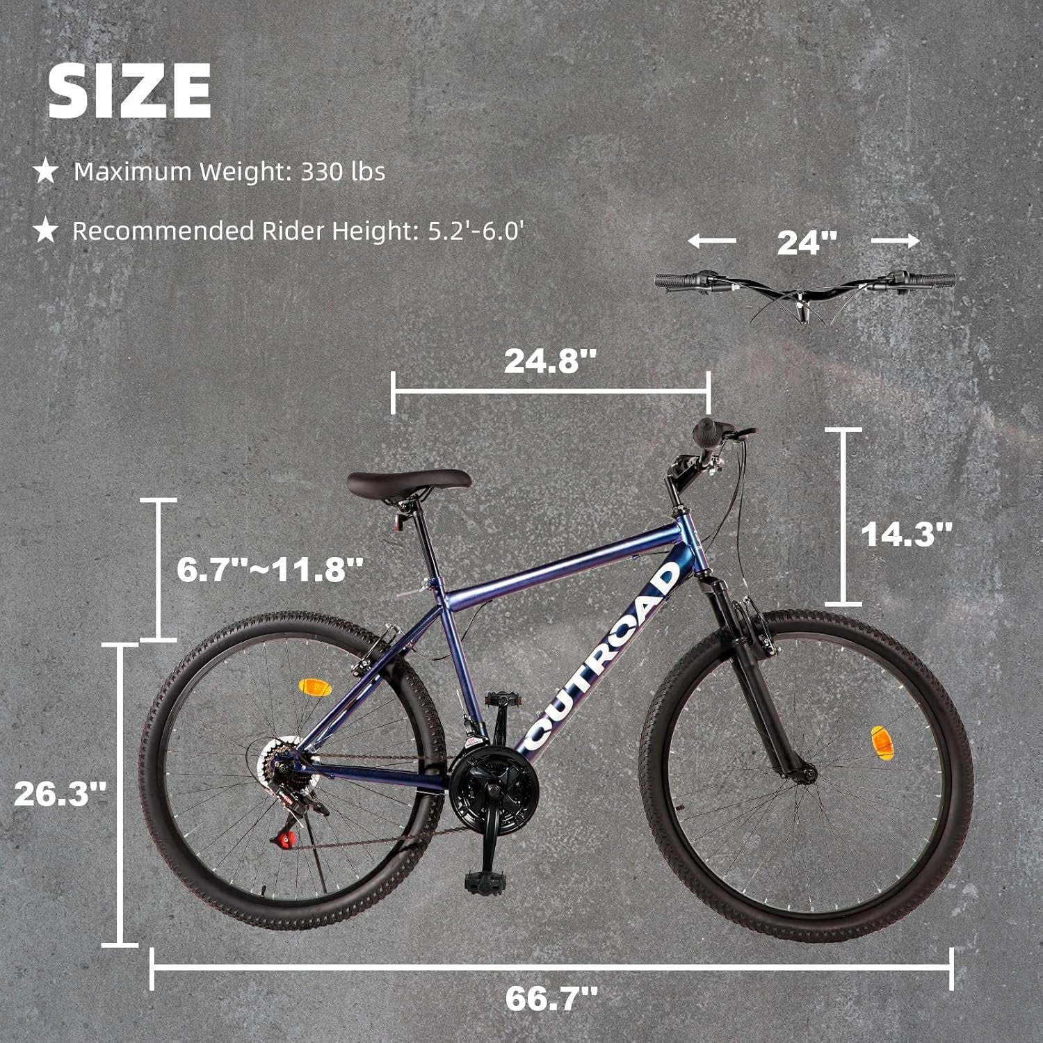 Outroad 26 Inch Mountain Bike, 21-Speed/High-Carbon Steel/Aviation Grade Frame, Dual Disc/V Brake, Adjustable Ergonomic Seat Bycycle for Men Women Adult, Quick Assembly in 20 Minutes