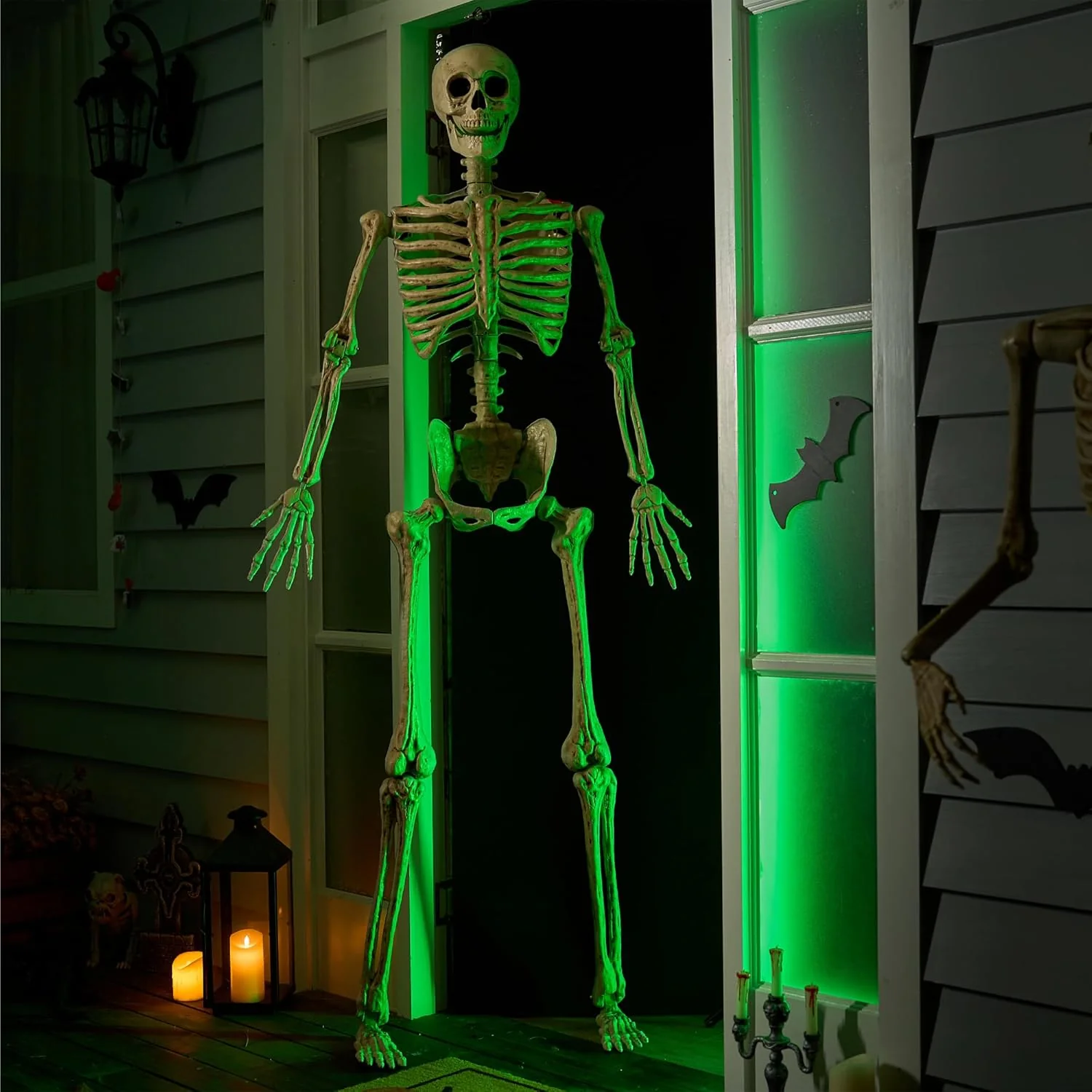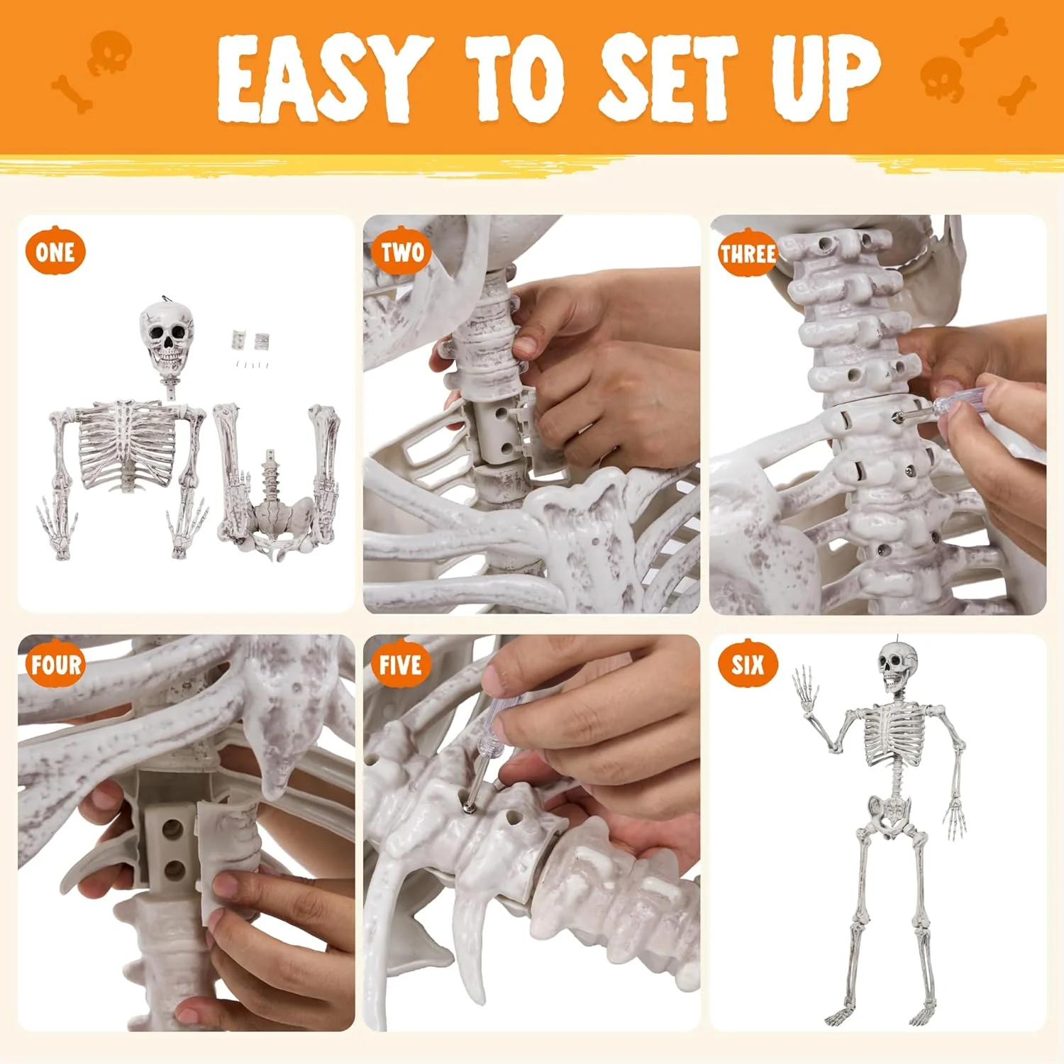 JOYIN 6.9 FT Halloween Skeleton Posable Plastic Full Body Realistic Human Bones with Movable Joints for Indoor Outdoor Halloween Props Spooky Scene Party Decorations(White, No Screwdriver)