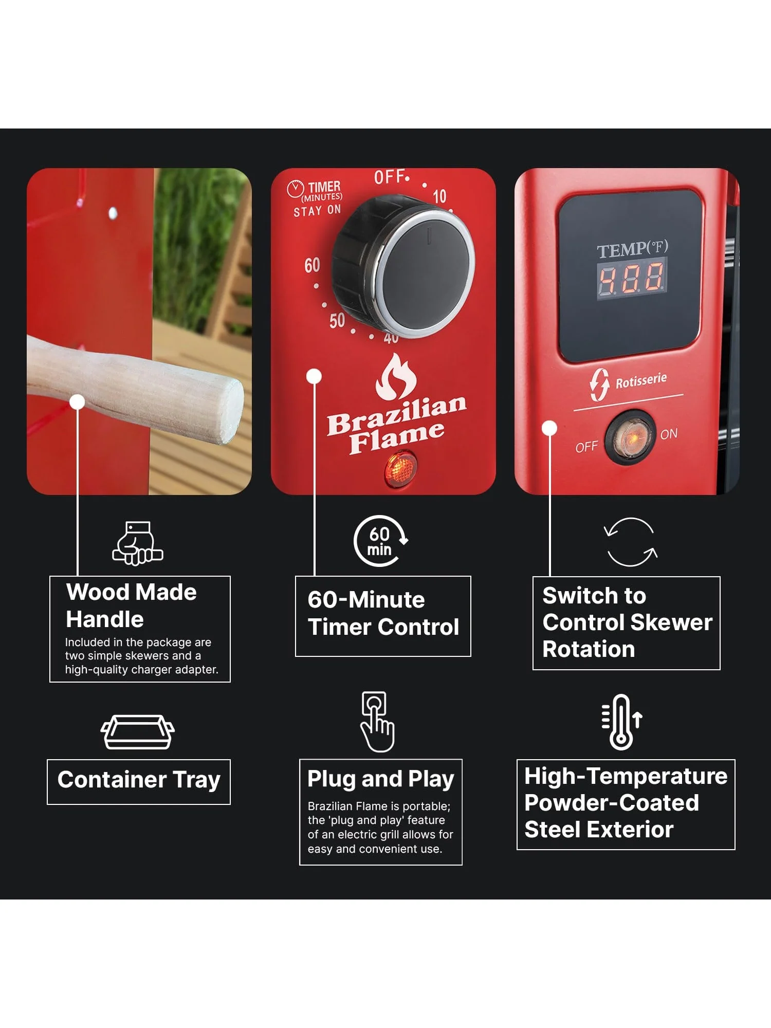 Brazilian Flame Churrasco? Gas Rotisserie Oven Grill Roaster with Auto Rotating Skewers for Rotisserie Chicken, Brazilian Style BBQ and Churrasco, Shawarma Machine, Propane Grill - 2024 Series